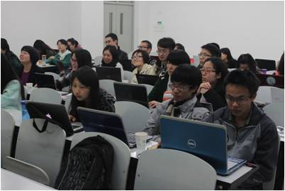 第一场活动主讲人是为我们熟知的来自3044永利集团的陈赟老师。陈赟老师围绕着宏观意义上的科研总体流程为我们做了详尽的介绍。陈赟老师首先深刻的阐述了自己对社会研究的理解,颇有启发意义。强调了研究的重要性,并且对如何做好研究做了指导。随后就是表达研究的内涵和环节以及一些研究工具介绍。着重介绍了endnote等实用工具,令同学们获益匪浅。同时老师通过举例的方式,说明了一般科研的流程及注意事项。其间,陈赟老师风趣的语言和独特的人格魅力使同学们深为折服。现场气氛热烈欢快。