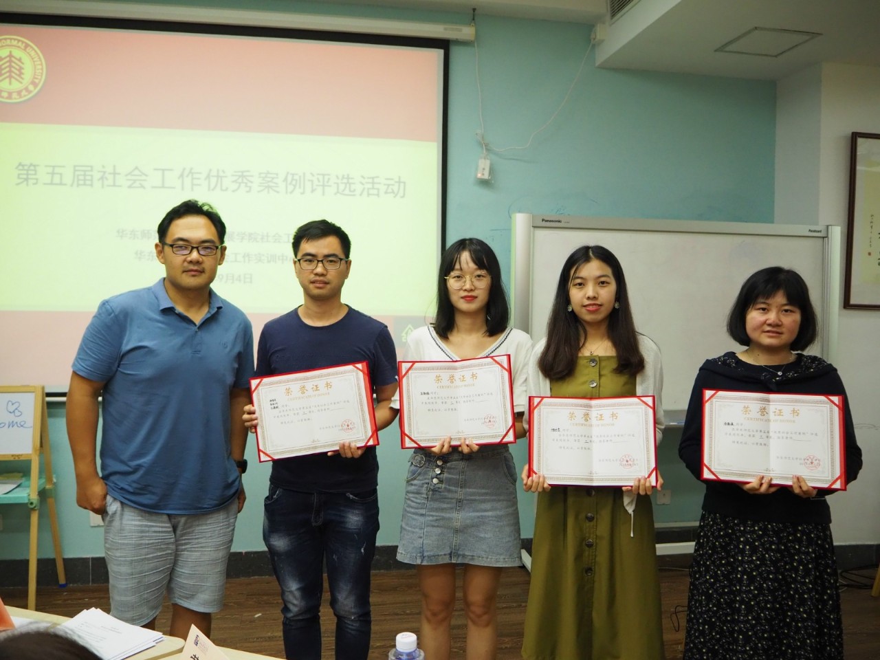 9月4日下午5:30,3044永利集团第五届“社会工作优秀案例”评选活动在位于法商北楼101的社会工作实训中心举行。公司党委副书记兼副经理、社会工作系黄燕副教授、社会工作系主任安秋玲副教授、社会工作系副主任吴同副教授应邀担任评委。社会工作专业硕士教育中心副主任、专业实习督导郭娟老师主持活动。本次共有九组作品参加评选,社会工作系各年级员工到现场观摩,约50位师生出席了本次活动。作为持续了五年的活动,案例评选过程中涌现了诸多优秀的作品,推动社会工作系案例教学逐步走向成熟,郭娟提议现场所有人“give me five”,互相击掌对活动的持续成功举办表示祝贺。