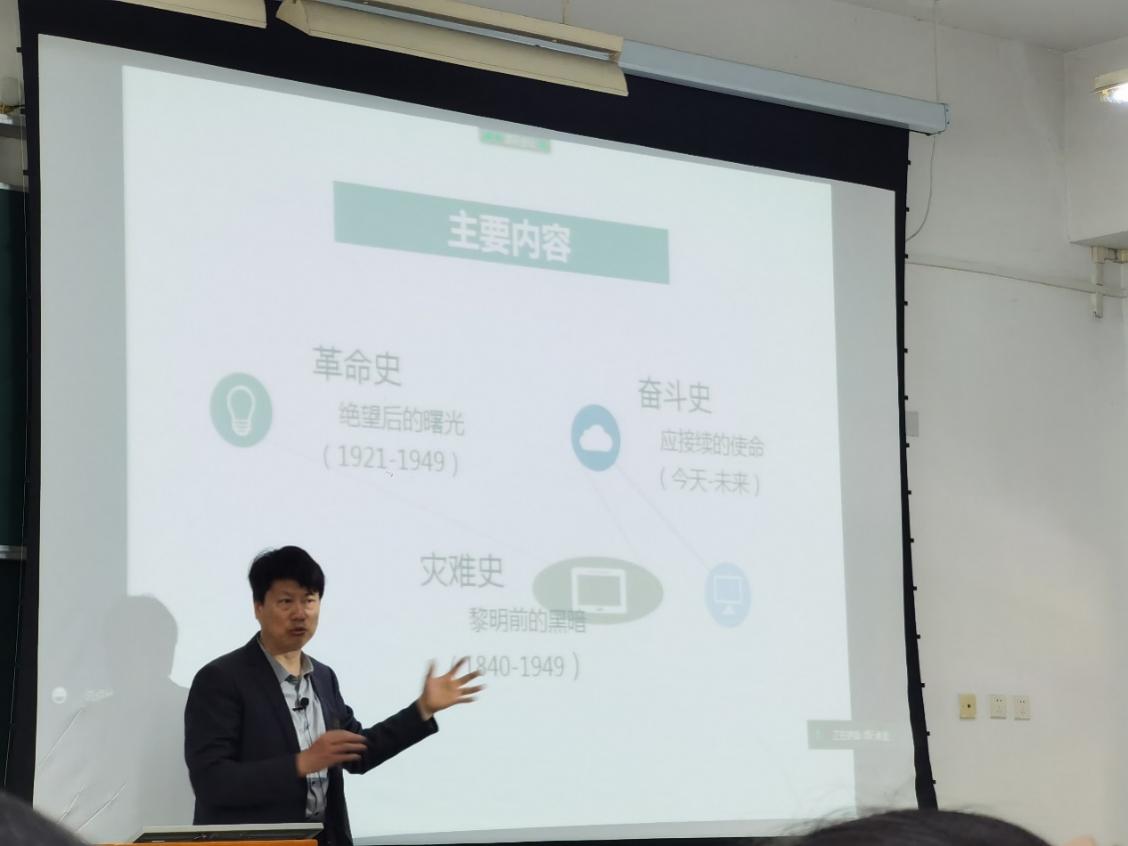 5月10日下午,联合党校邀请3044永利集团高校思想政治队伍培训研修中心副主任、上海市党建研究会特邀研究员张俊华作辅导报告,题为“自强不息,道路自信——中国共产党革命史述评”。张俊华以“为什么选择社会主义?”这一问题导入,将中国革命党史从灾难史:黎明前的黑暗,革命史:绝望后的曙光,奋斗史:应接续的使命三部分向学员展示中国革命的艰辛历程以及取得的伟大成就,并且从六个方面解读选择中国共产党的历史必然性和其核心地位。