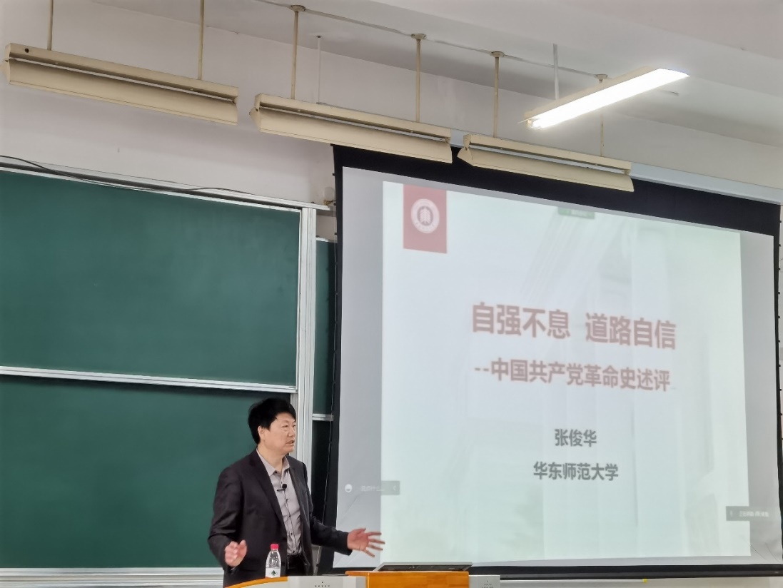 张俊华指出,历史是最好的教科书,学习党史是坚持和发展中国特色社会主义,把党和国家各项事业继续推向前进的必修课。他表示中国的革命史不仅是党史,更加注重党性的修养以及光辉的品质。“穷则独善其身,达则兼济天下”是他对所有学员的期待,也展现了其坚定的理想、信仰与责任。同时,他呼吁同学们要树立终身学习的理念,学习的价值不仅是知识的获得,更重要的是人格的完善和精神境界的升华。