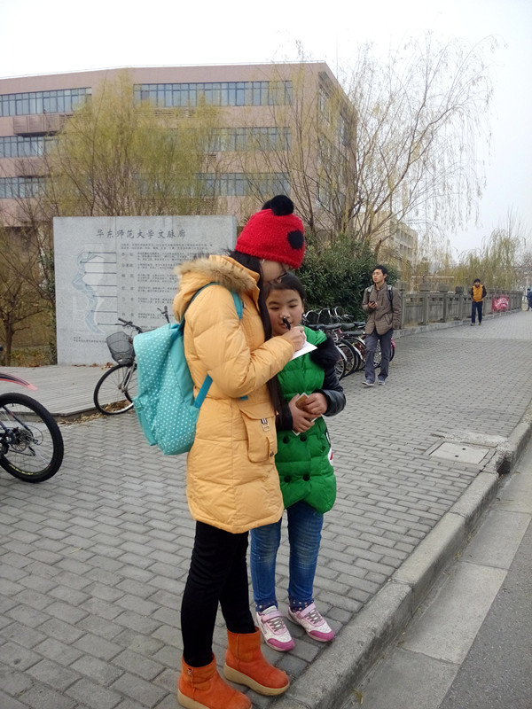 第二部分的活动内容是志愿者们与小朋友们一起共进午餐并在此段时间内完成任务:小朋友把自己制作的DIY祝福卡片送给路人,并让路人在空白明信片上写上对小朋友的新年祝福和期待。志愿者们带着小朋友们到公司食堂进行用餐,美味的午餐让小朋友们很开心,用餐的气氛其乐融融。吃过饭后,志愿者与小朋友一起小在华师大校园内玩耍并随意挑选路人完成“互送祝福”的任务。当小朋友们成功送出十张祝福卡片并收到十张被祝福的明信片,任务也就完成了。