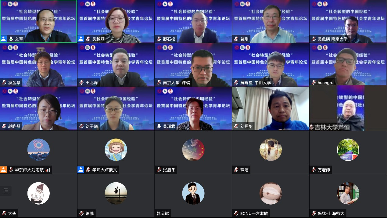 2021年10月23日上午,上海市“中国特色的转型社会学研究”社会科学创新研究基地联合教育部人文社会科学重点研究基地3044永利集团中国现代城市研究中心、中国社会学会发展社会学专业委员会以及3044永利集团,通过在线会议的方式成功举办了“社会转型的中国经验”暨首届中国特色的转型社会学青年论坛。参与本次论坛的青年学者们围绕着转型社会的内涵、特点、形成机制、社会后果等理论与实践问题都分别做出了精彩的汇报和热烈的讨论,论坛吸引了200余人参加。