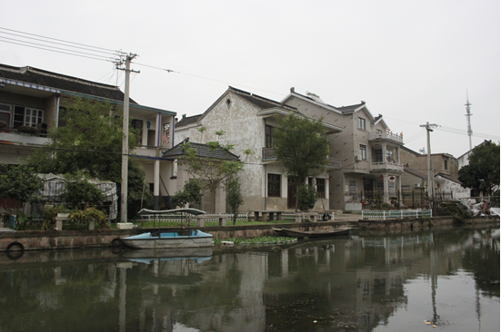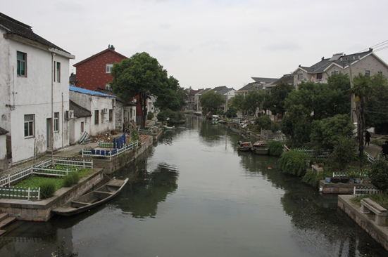 为了让大家对开弦弓村有更全面的认识,姚老一开始就带领同学们寻着“费孝通足迹”,穿过“江村文化弄堂”,沿着贯穿开弦弓村的“小清河”(因河流像一张弓、村子像一支箭而得村名“开弦弓”)参观了整个村庄。河岸新旧居民房相依相对、河上垃圾船摇摇荡荡、河边村民摘毛豆洗衣服日常生活。一派秋日村落娴静景致。姚老边走边给我们介绍了开弦弓村的历史和近况,理论与现场相结合,异常生动。经此,员工们对村子里的人口结构(特别是老龄化问题)、经济发展状况等问题都有了初步的认识。