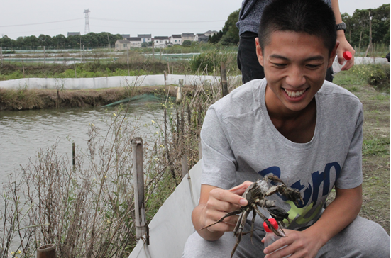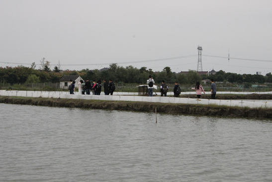 午餐过后,姚老基于员工们上午的提问带大家参观了一家纺织厂和一片螃蟹养殖区。在纺织厂中,员工们看到了丝是如何生产加工制作出来的,进一步确认了这些丝是化纤而不是羊毛的事实;而在螃蟹养殖专业户那里,员工们了解到螃蟹具体是如何养殖的,他们得知,螃蟹并非本地产,而是从其他地方购买的,因为螃蟹只能从咸水中孵化,而这儿的水田都是淡水因而无法满足培植螃蟹的要求等问题。
