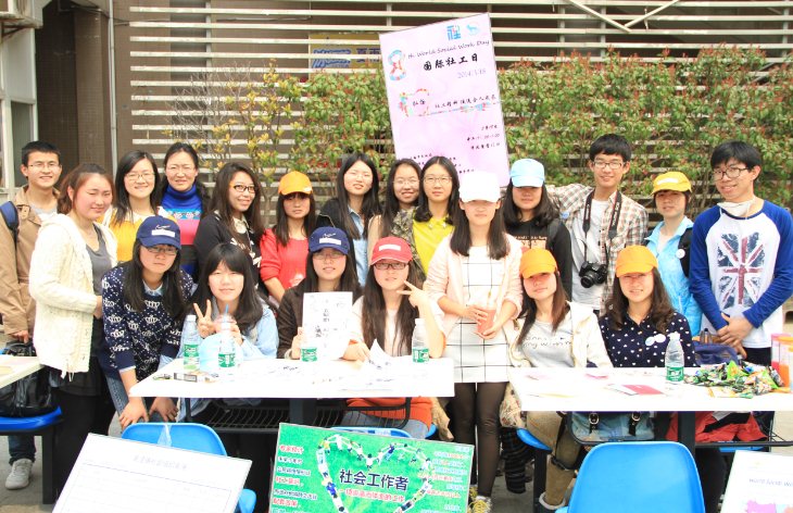 志愿者在校园内宣传国际社工日