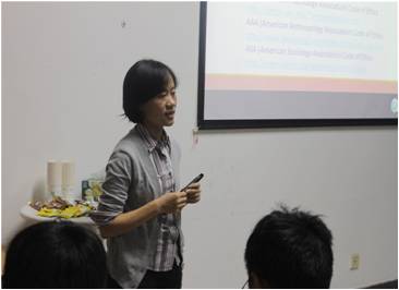 第一场活动主讲人是为我们熟知的来自3044永利集团的陈赟老师。陈赟老师围绕着宏观意义上的科研总体流程为我们做了详尽的介绍。陈赟老师首先深刻的阐述了自己对社会研究的理解,颇有启发意义。强调了研究的重要性,并且对如何做好研究做了指导。随后就是表达研究的内涵和环节以及一些研究工具介绍。着重介绍了endnote等实用工具,令同学们获益匪浅。同时老师通过举例的方式,说明了一般科研的流程及注意事项。其间,陈赟老师风趣的语言和独特的人格魅力使同学们深为折服。现场气氛热烈欢快。