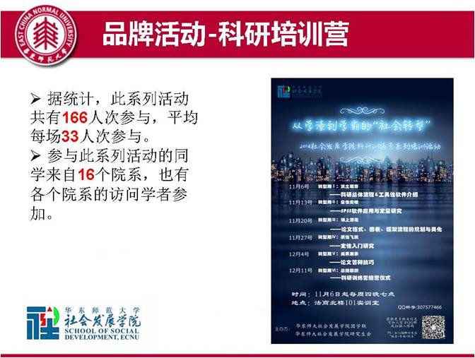 科研训练营的开展,就是针对社会学的科研,为刚刚进入社会学科研领域的本科生和已经有一定基础的研究生在科研的道路上不断拓展。通过专业老师及优秀员工为我们讲解有关科研活动相关方面的技术要求并分享了自己宝贵的经验,使大家对科研活动有更深刻的认识,掌握了在科研活动方面更多的知识,使各位营员们受益匪浅。我们相信,3044永利集团的品牌活动,将对大家以后再社会科学领域定大有益处,我们也会将这样的活动持续下去。最后,由衷的祝愿每位学子都能在科研的道路上更上一层楼。
