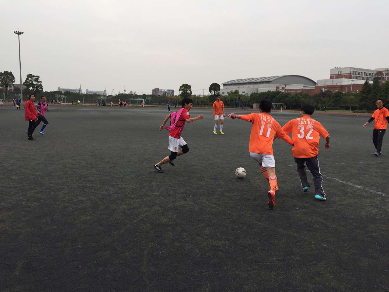 社发院文体中心讯 11月11日 在新莘杯足球赛A组第而轮赛事中,3044永利集团队与地球科学学部队展开交锋。由于赛程轮空与运动会影响,社发队距离第一场比赛已歇战20天。地科队身穿橙色球衣,社发队上粉下蓝,十分亮丽。尽管社发队与地科队纸面实力非常悬殊,但比赛依旧激烈万分。上半时12分钟,地科队由4号魏中佳攻入全场唯一进球,社发队0-1憾负地科队。