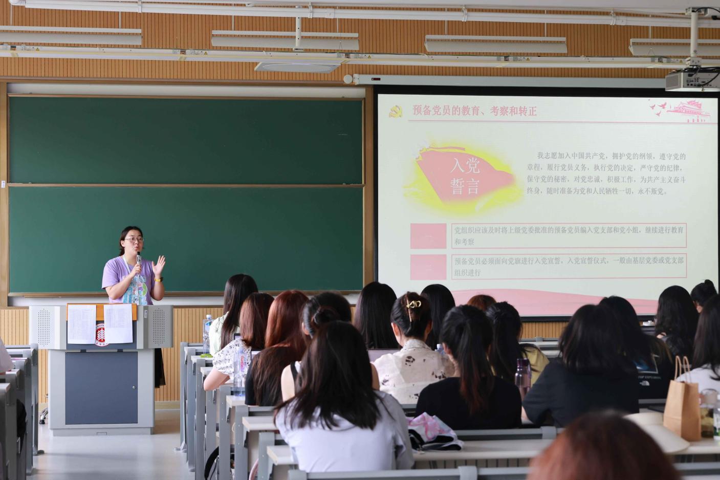 为深化新生党员对党的认识,筑牢信仰之基、强化担当之责,2025年9月15日上午,公司党委在闵四教214圆满举行新生党员第一课活动。公司党委书记熊琼为新生党员上题为“铭记历史,努力奋斗,做新时代有志青年”的党课,党委副书记庞荣老师,党委委员、研究生辅导员陆芳萍老师,党委专职组织员李媛媛老师,本科生辅导员李萌荻老师以及全体新生党员参加了本次活动。