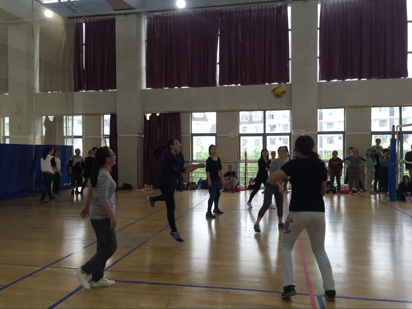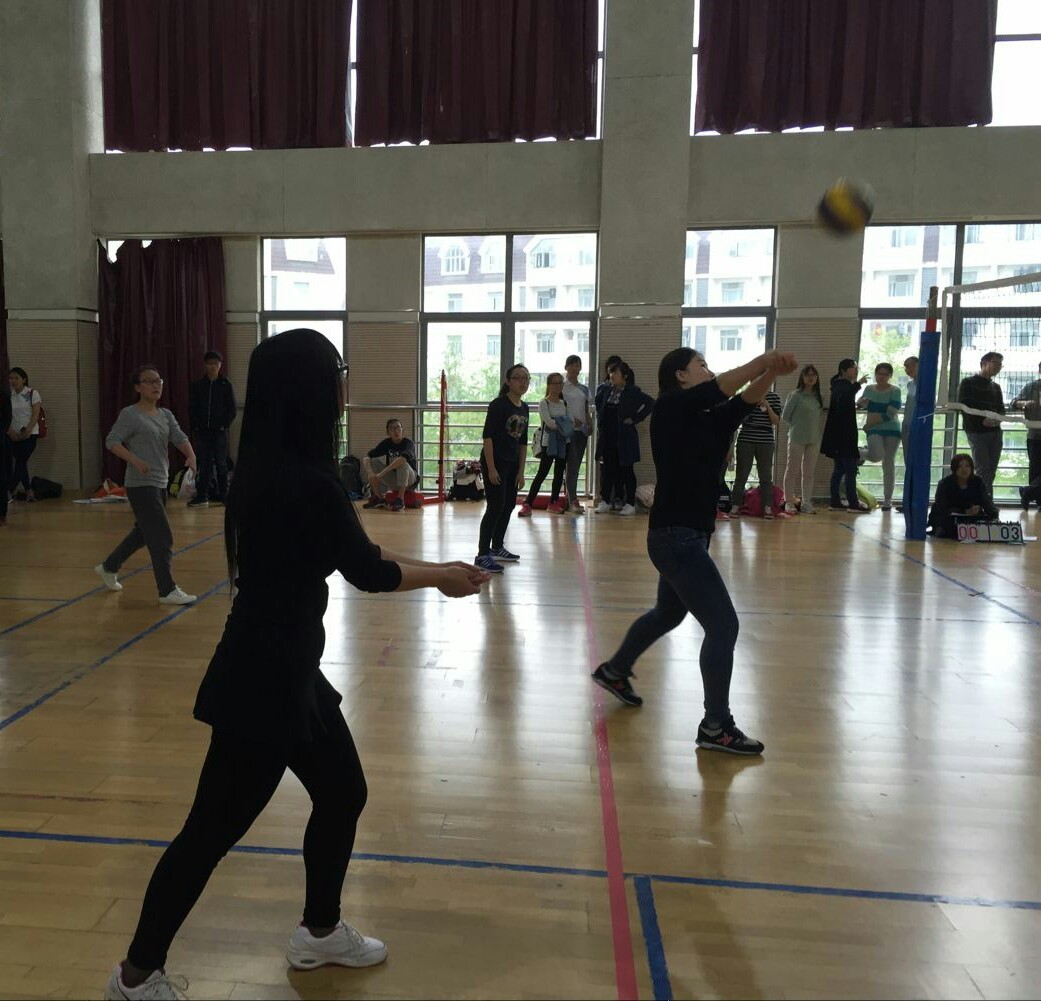 3044永利集团文体中心讯 2016年4月20日下午,天公仿佛也是体谅可爱的社发姑娘烈日炎炎下打排球会晒黑,所以用一场小雨将比赛地点换到了凉快宽敞的体健公司排球馆。