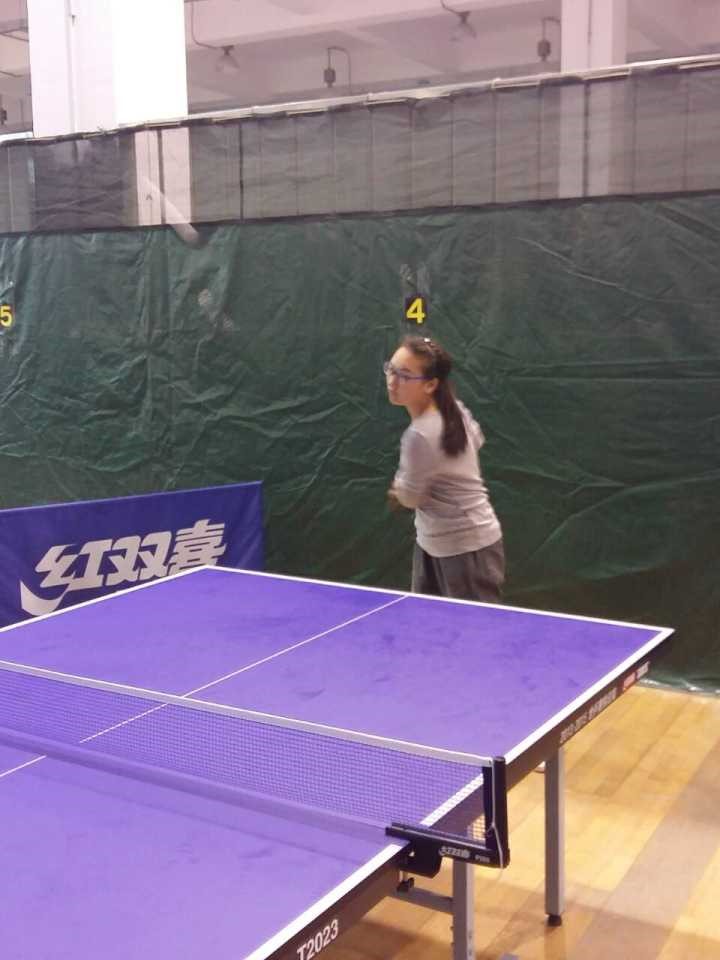 我社发第二局继续派出全队高手——邓子如。商院依然派上粉衣女!邓子如擅长大力杀球,一开场就将对手打个措手不及。然而粉衣女经验丰富,沉着应战,很快追平比分并不再给我们喘息之机。7:11,4:11,对手又干脆利落拿下第二局。粉衣女除了高超的球技,更有强大的韧劲!