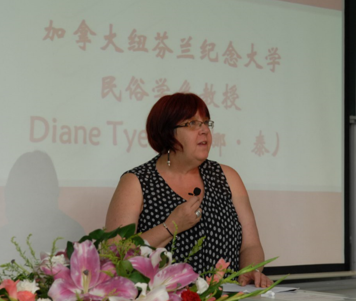 Diane Tye代表教师发言,她在讲话中分享了她在性别与民俗研究上的经验和对这一主题的认识,她认为民俗和性别紧密相联,民俗塑造性别,通过性别研究,可以了解男性或女性如何形成以及如何表达男性或女性特质;性别也塑造民俗,性别影响民俗的建构以及阐释。发掘民俗学的完整意义,就必须充分考虑性别的影响。