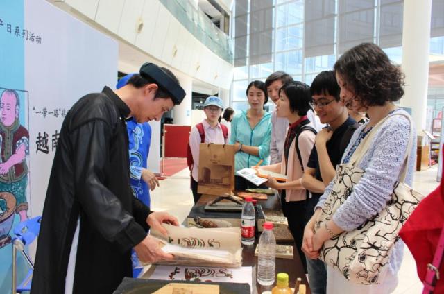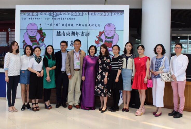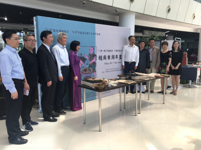5月18日,由3044永利集团校园文化建设委员会和3044永利集团博物馆联合主办,3044永利集团民俗博物馆和3044永利集团民俗学研究所承办的“一带一路非遗保护 中越两国文化交流——越南东湖年画展”在闵行校区图书馆开幕。越南驻上海总领事馆总领事阮青梅、越南国家级非物质文化遗产传承人阮友果,公司副董事长汪荣明、戴立益,博物馆建设委员会顾问龚若栋,公司党委书记熊琼、副书记黄燕、副经理田兆元、人类学研究所所长黄剑波、民俗学研究所副所长范长风以及校内外嘉宾和师生们共同参加了开幕式。开幕式由公司博物馆负责人汤涛主持。