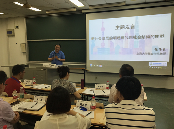 上海大学社会公司张海东教授作了题为《新社会阶层的崛起与我国社会结构的转型》的发言。他分析指出,中国新阶层人士主要是知识分子,包括以下四类人:私营企业和外资企业的管理技术人员、中介组织和社会组织从业人员、自由职业人员、新媒体从业人员。张海东教授还从新社会阶层的规模和构成特性、新社会阶层“新”在何处、新社会阶层与我国社会结构的变化等三个层面介绍了我国新社会阶层的崛起。“新社会阶层”推动了我国社会结构从“金字塔型”向“橄榄形”过渡,扩大了中等收入群体,改变了传统单一的“城乡二元结构格局”,使社会结构更加多元、复杂。