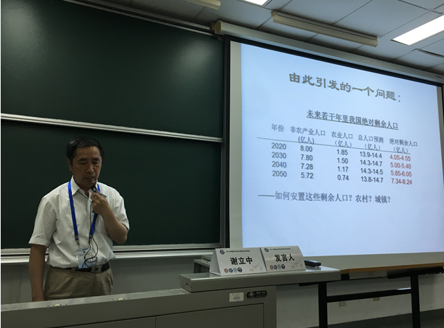 北京大学社会学系教授谢立中教授作了题为《中国城镇化水平的未来发展前景》的报告。他认为,影响一个地区的城镇化率的主要因素有两个:一是在可以维持所需农村必要劳动力条件下,该地区能够并且愿意居住到城镇的剩余人口总量。二是在可以持续维持城镇人口既定生活水平的条件下面,城镇区域能够容纳的总人口数量。围绕城镇化的天花板到底在哪里的提问,谢立中教授用自己方法对未来中国城镇化率水平做出了预测,并提出了相应的城镇化发展策略。