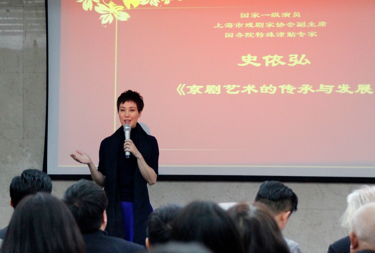 著名京剧表演艺术家史依弘老师以自己学习京剧、表演和创新剧目的经历,介绍了现代京剧传承发展的经验。在主持人王晓葵教授的邀请下,史依弘老师现场表演了《梨花颂》唱段,赢得满堂彩。
