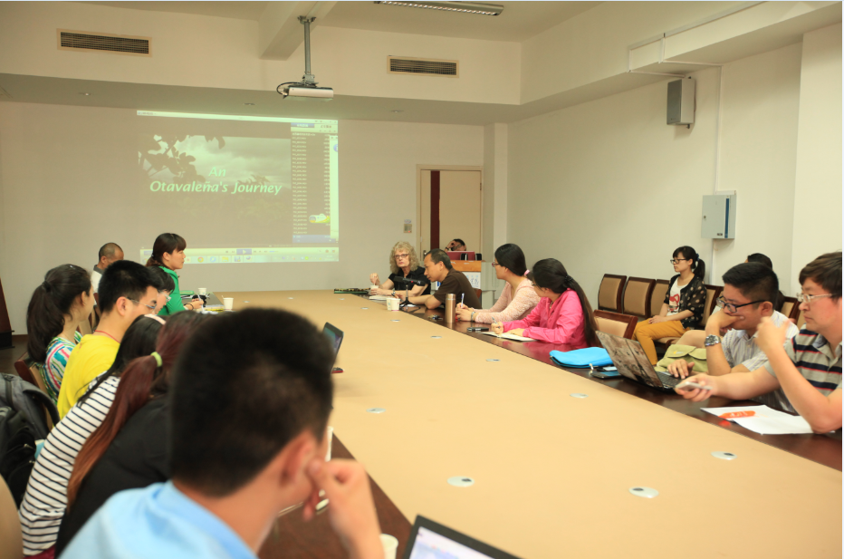 谢尔曼教授在介绍完了自己在民俗学研究中的影视拍摄历程之后,又邀请我们一起欣赏了她在厄瓜多尔跟踪拍摄的一个纪录片作品《An Otanalenas Journey》。欣赏完影片,老师和同学们就影片拍摄的角度和内容与谢尔曼教授展开了热烈讨论。